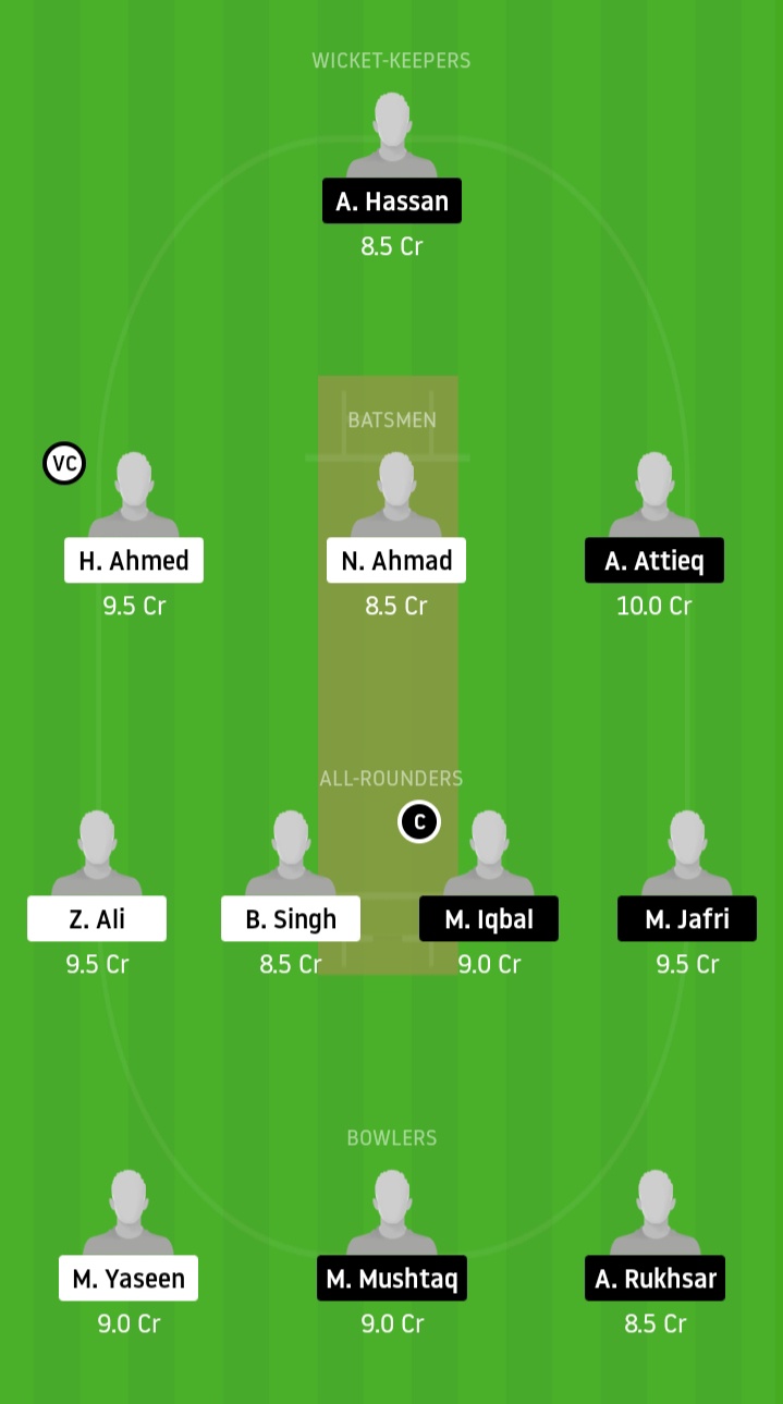 Ahmad (WK), Hasnat Ahmed, Adnan Ali, Waseem Ahmad, Hamza Saad, Muhammad Yaseen, Abdul Rehman, Shueb Khan, Zain Abdeen ul, Raheem Qureshi, Usama Munir