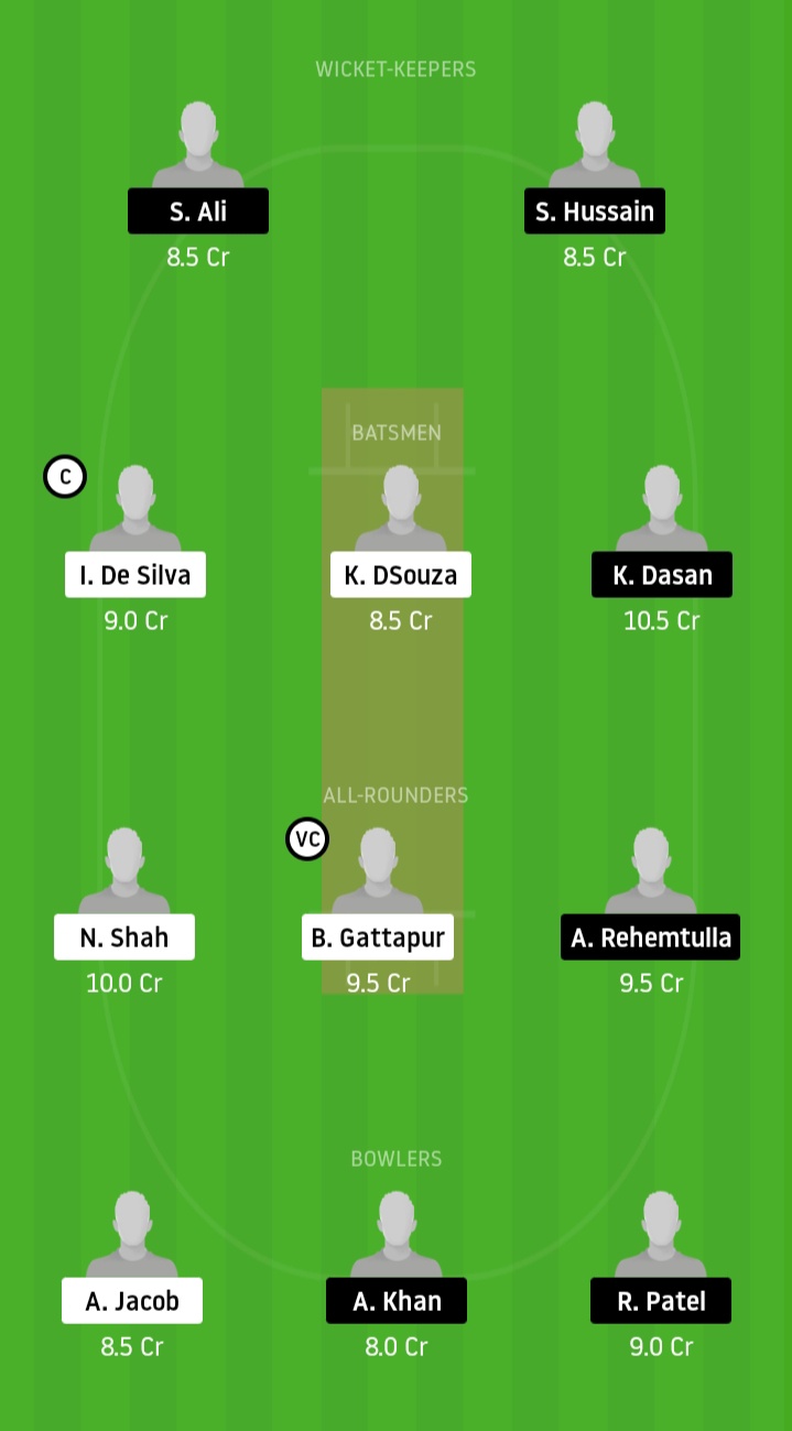 Ishaan De Silva, Albin Jacob, Bipin Gattarpur, Nikhil Oliviera, Nisarg Shah, Delrick Vinu, Tirth Patel, Ashbel Nicson, Kevin D’Souza, Omar Rasool, Huzaif Yusuf