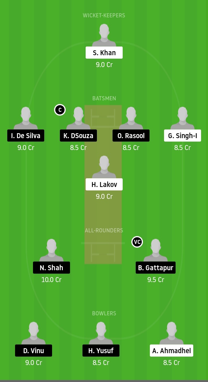 Nikhil Oliviera (WK), Ishaan De Silva, Kevin DSouza, Omar Rasool, Gathsara Seekkuge, Fawaz Khalid, Nisarg Shah, Bipin Gattapur, Tirth Patel, Ashbel Nicson, Nithin Koppula