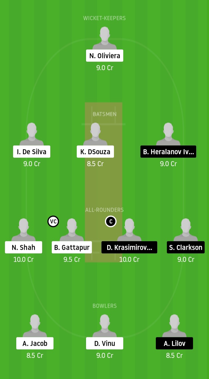 Nikhil Oliviera (WK), Ishaan De Silva, Kevin DSouza, Omar Rasool, Gathsara Seekkuge, Fawaz Khalid, Nisarg Shah, Bipin Gattapur, Tirth Patel, Ashbel Nicson, Nithin Koppula