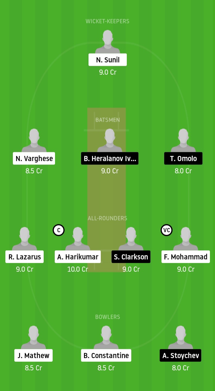 Nithin Sunil, Clix John, Benhur Benjamin, Nezer Varghese, Ashad Arifeen, Romald Lazarus, Akshay Harikumar, Arun Saj, Ken Shaji, Fayyas Mohammad, Jake Mathew, Bradley Constantine, Kevin Shaji, Mandeep Singh, Apoorv Mishra, Shaun Dillon.