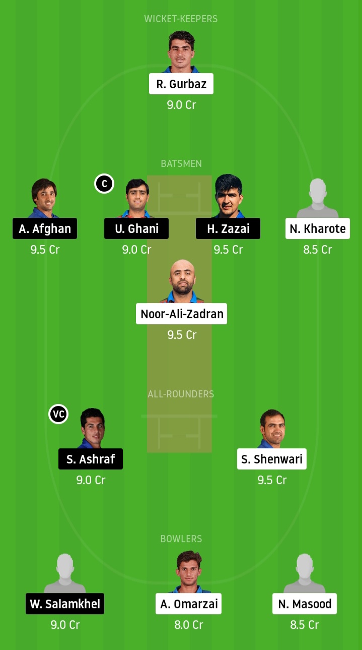 Rahmanullah Gurbaz, Noor Ali Zadran, Reyaz Hassain, Nangeyalia Kharote, Sediqullah Atal, Wasim Akram, Samiullah Shenwari, Farmanullah, Ziaur Rahman Akbar, Nijat Masood, Azmatullah Omarzai.