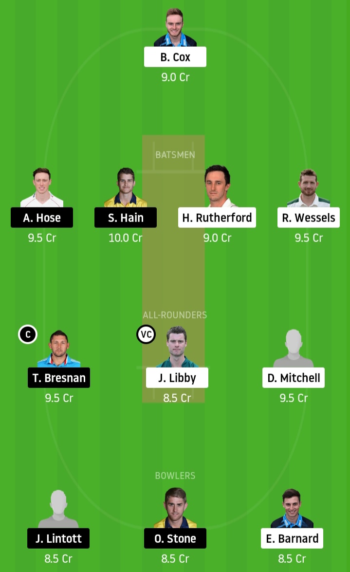 Hamish Rutherford, Riki Wessels, Jake Libby, Ben Cox(w), Ross Whiteley, Brett DOliveira, Daryl Mitchell, Ed Barnard(c), Adam Finch, Patrick Brown, Charlie Morris.