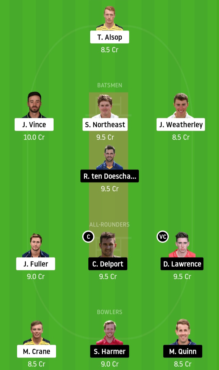 James Vince (c), Tom Alsop, Sam Northeast, Joe Weatherley, James Fuller, Lewis McManus (wk), Ian Holland, Chris Wood, Ryan Stevenson, Mason Crane, Shaheen Afridi.