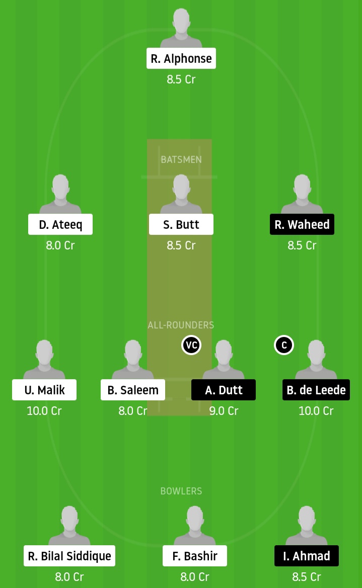 Remco van der Giessen, Tobias Nota, Alyan Razzaqi, Floris de Lange, Harold Vogelaar, Jenagan Kanagasabapathy, Nirav Kulkarni, Rehan Waheed, Righardt Pieterse, Shawn Francis, Tahir Bajwa, Tom de Grooth, Aryan Dutt, Bas de Leede, Philippe Boissevain, Vivian Kingma, Yasir Hamid, Ali Qasim Ahmad, Ariff Khan, Arslan Ahmed, Atif Zaka, Iftikhar Ahmad, Ricardo Goncalves, Sajjad Kamal, Steffen Mulder, Stijn de Leede.