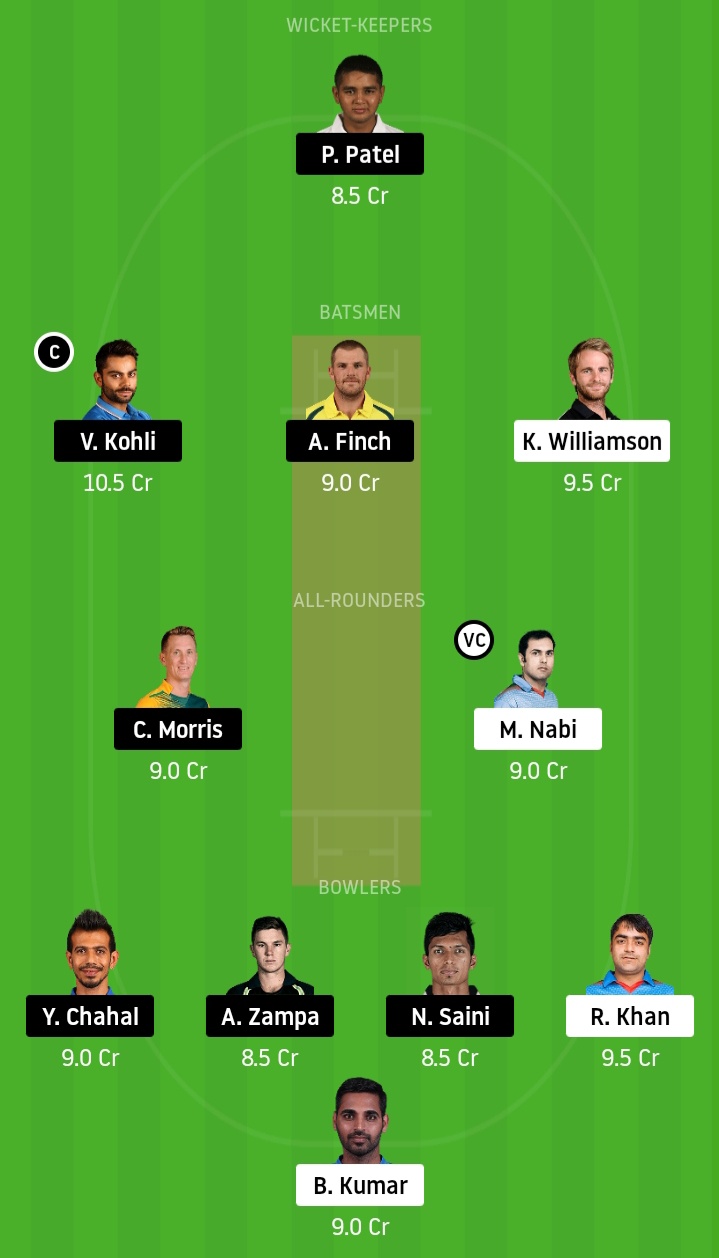 Grand League Tips: Try one team in GL without Virat and David Warner. Make C to Rashid Khan and M Nabi. Devduut Padikkal and W Sundar are also very good player must try them one of your GL team if they play.