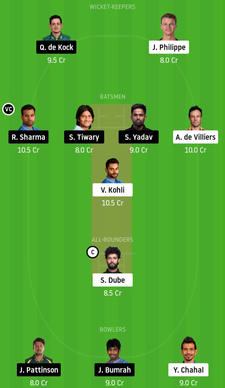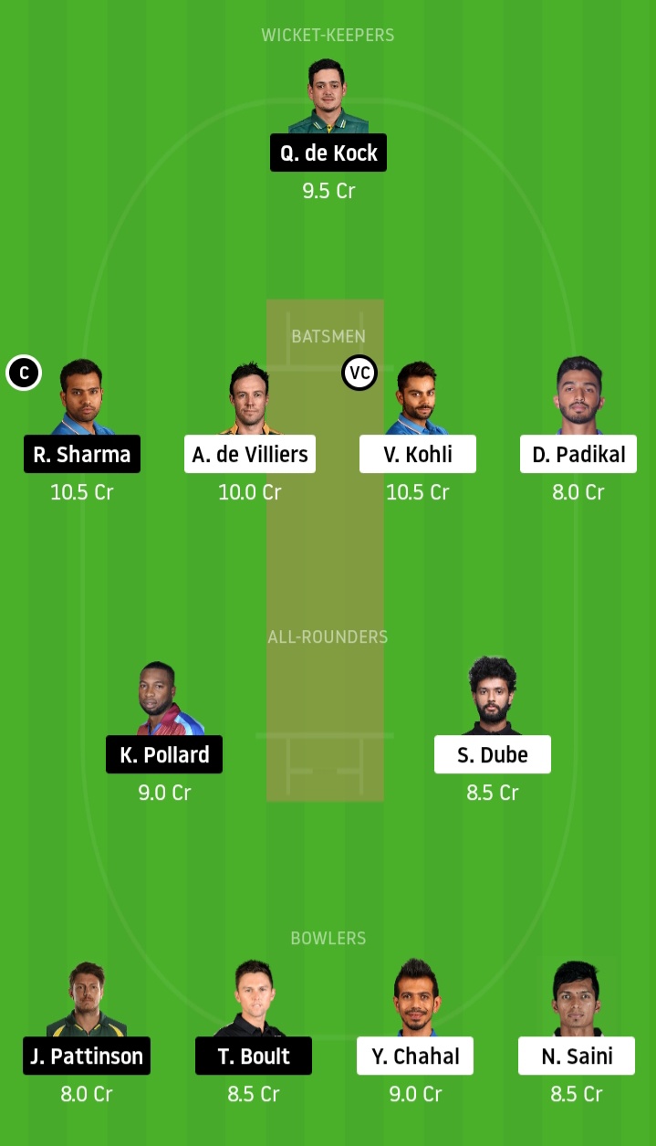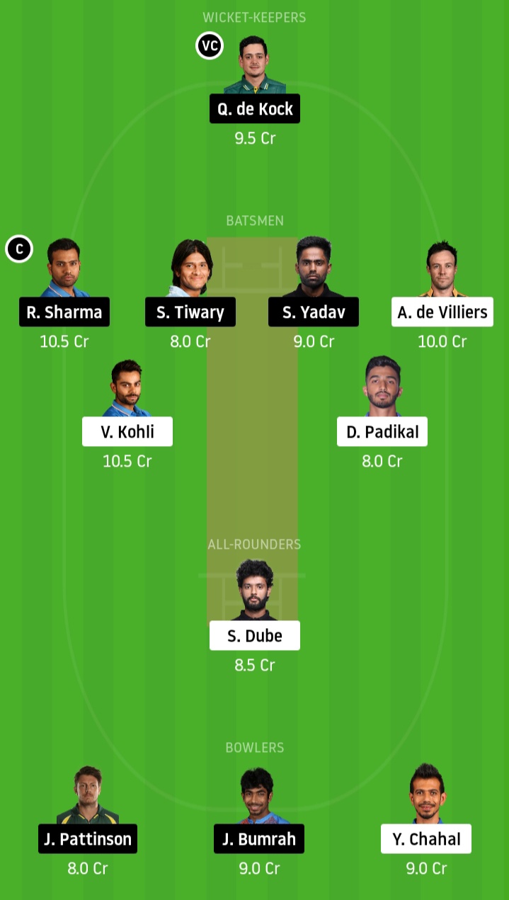 One reply to “BLR vs MI Dream11 Team Prediction|Match10|IPL 2020|RCB vs MI|Today Match|”