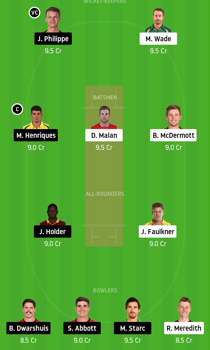 Moises Henriques , Sean Abbott, Jackson Bird, Daniel Christian, Tom Curran, Ben Dwarshuis, Jack Edwards, Mickey Edwards, Daniel Hughes, Hayden Kerr, Nathan Lyon, Ben Manenti, Steve OKeefe, Josh Philippe, Lloyd Pope, Jordan Silk, James Vince, Jason Holder, Carlos Brathwaite, Mitchell Starc