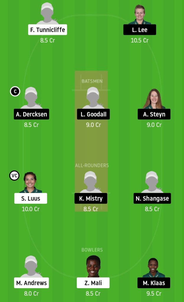 Chloe Tryon, Masabata Klaas, Lizelle Lee, Andrie Steyn, Lara Goodall, Nondumiso Shangase, Khushi Mistry, Evodia Yekile, Christine Tomlinson, Annerie Dercksen, Tatum Le Roux, Anri Grobbelaar, Leah Jones
