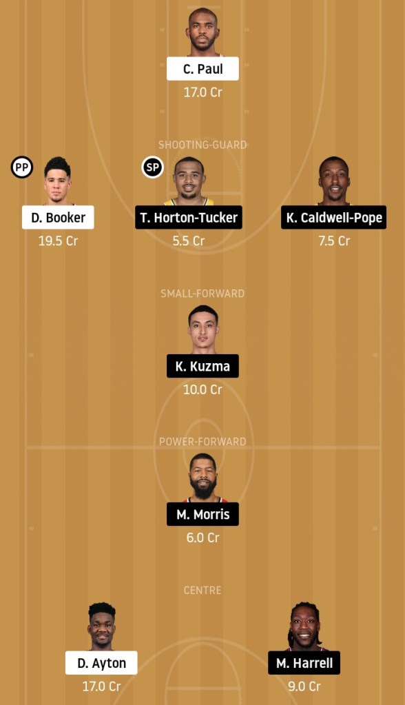 Ty Shon Alexander, Deandre Ayton, Devin Booker, Mikal Bridges, Jevon Carter, Jae Crowder, Langston Galloway, Cameron Johnson, Damian Jones, E Twaun Moore, Johnathan Motley, Abdel Nader, Chris Paul, Cameron Payne, Dario Saric, Jalen Smith