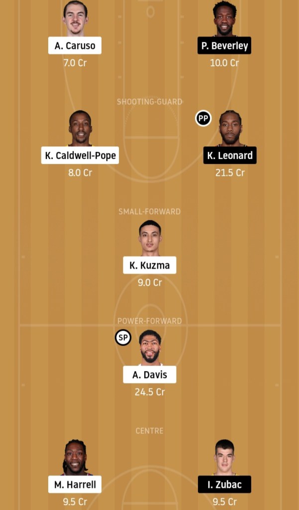 Kostas Antetokounmpo, Devontae Cacok, Kentavious Caldwell Pope, Alex Caruso, Quinn Cook, Anthony Davis, Jared Dudley, Marc Gasol, Montrezl Harrell, Talen Horton Tucker, LeBron James, Kyle Kuzma, Wesley Matthews, Alfonzo McKinnie, Markieff Morris, Dennis Schroder, Zavier Simpson, JR Smith