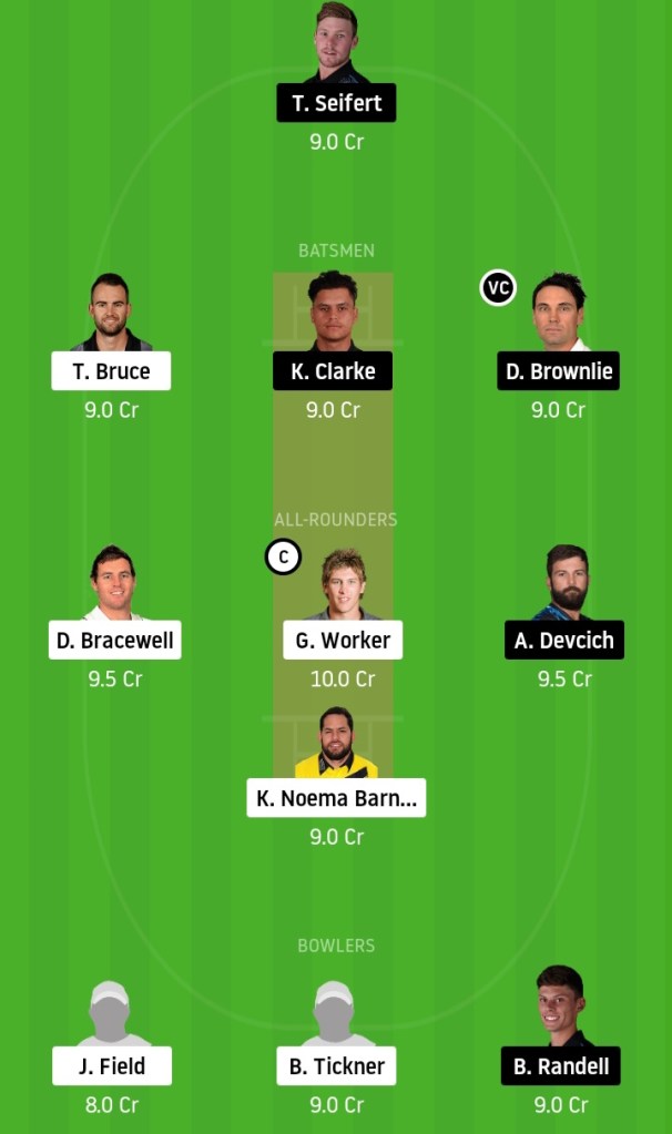 Dane Cleaver, Bayley Wiggins, Tom Bruce, Christian Leopard, Ben Smith, Greg Hay, George Worker, Doug Bracewell, Kieran Noema Barnett, Josh Clarkson, Brad Schmulian, Blair Tickner, Seth Rance, Ben Wheeler, Felix Murray, Ajaz Patel, Jayden Lennox, Raymond Toole, Joey Field