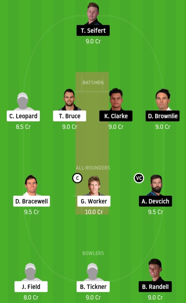 Dane Cleaver, Bayley Wiggins, Tom Bruce, Christian Leopard, Ben Smith, Greg Hay, George Worker, Doug Bracewell, Kieran Noema Barnett, Josh Clarkson, Brad Schmulian, Blair Tickner, Seth Rance, Ben Wheeler, Felix Murray, Ajaz Patel, Jayden Lennox, Raymond Toole, Joey Field