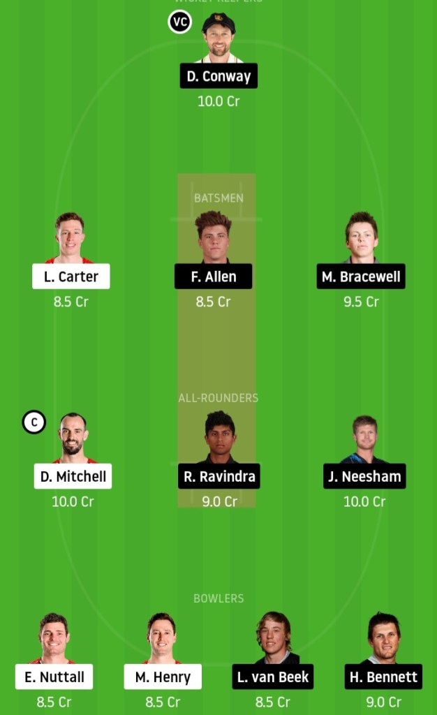 Fraser Colson, Troy Johnson, Michael Bracewell , Rachin Ravindra, Jamie Gibson, Logan van Beek, Lauchie Johns, Hamish Bennett, Ian McPeake, Michael Snedden, Peter Younghusband, Finn Allen, Jimmy Neesham,