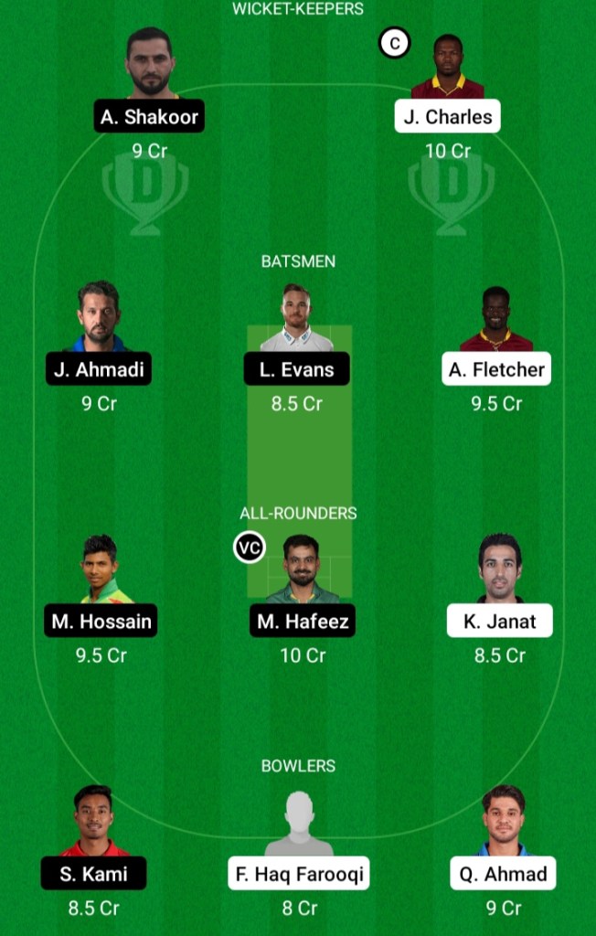 Chirag Suri, Johnson Charles, Adam Hose, David Wiese, Afif Hossain, Mahedi Hasan, Isuru Udana, Aryan Lakra, Andre Fletcher, Tom Moores, Qais Ahmad, Mohammad Irfan, Karim Janat, Fazalhaq Farooqi, Noor Ahmad, Mujeeb Ur Rahman, G Gardon